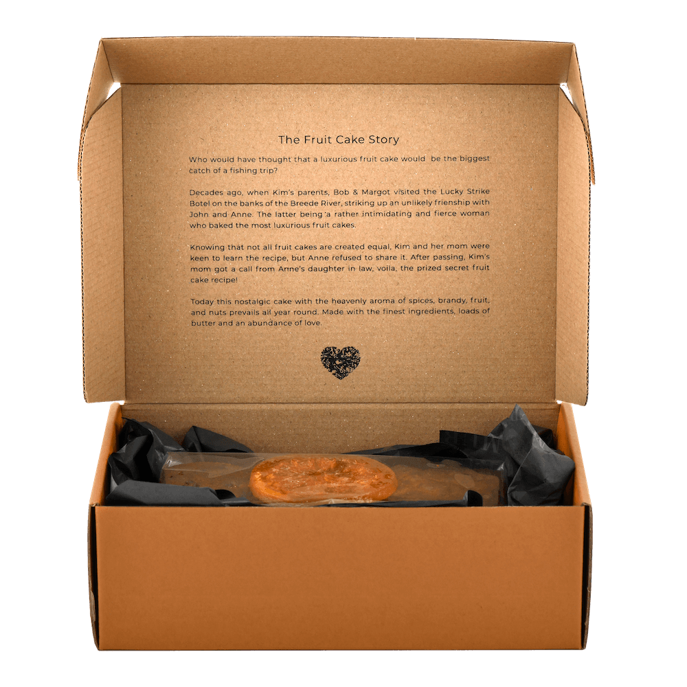 Our signature fruit cake, beautifully packaged as a refined gift.